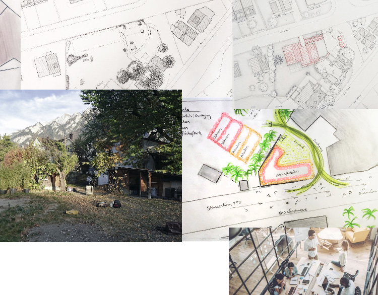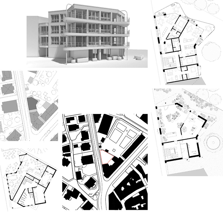 in einem zweiten Schritt machten wir uns mit dem Ort vertraut, seiner Atmosphäre, seinen spezifischen Qualitäten, der Einstrahlung der Sonne, den schönen Aussichten, lärmigen Strassen, möglichen Seiten der Ankunft, den Gebäudetypologien der Nachbarschaft - und dem Wesen ihrer Bewohner.